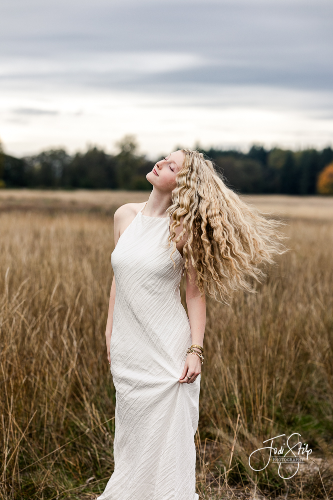 Haley is a Class of 2026 senior at Aloha High School. Several years ago I photographed her older sister but then lost touch with their family.  When Haley reached out it took me a minute to put the connection together, especially since she found me through one of her volleyball teammates that I photographed this year.  The internet really makes a BIG world so much smaller.  It was such a gift to reconnect with Haley’s mom and meet the “younger sister” I heard about before.  We had a beautiful evening for her photo session in that special season where summer is holding on for dear life but fall is taking over. And can we just talk about the hair? The outfits?  The attitude?  She’s giving Greek Goddess and I love every single photo. Have a fantastic senior year Haley. Such a treat to work with you.